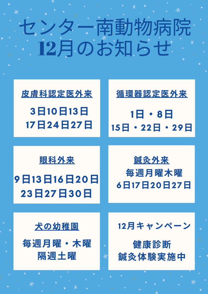 センター南動物病院 12月のお知らせ